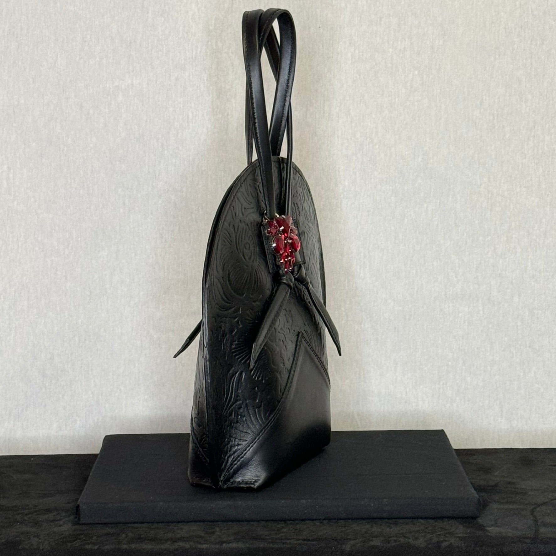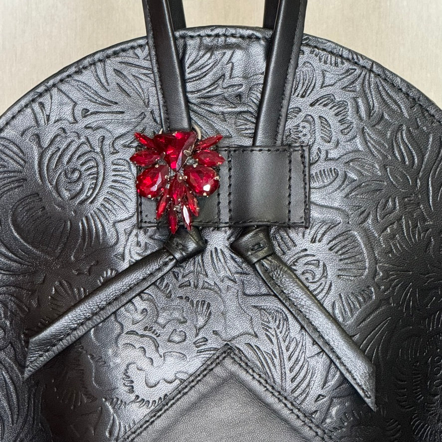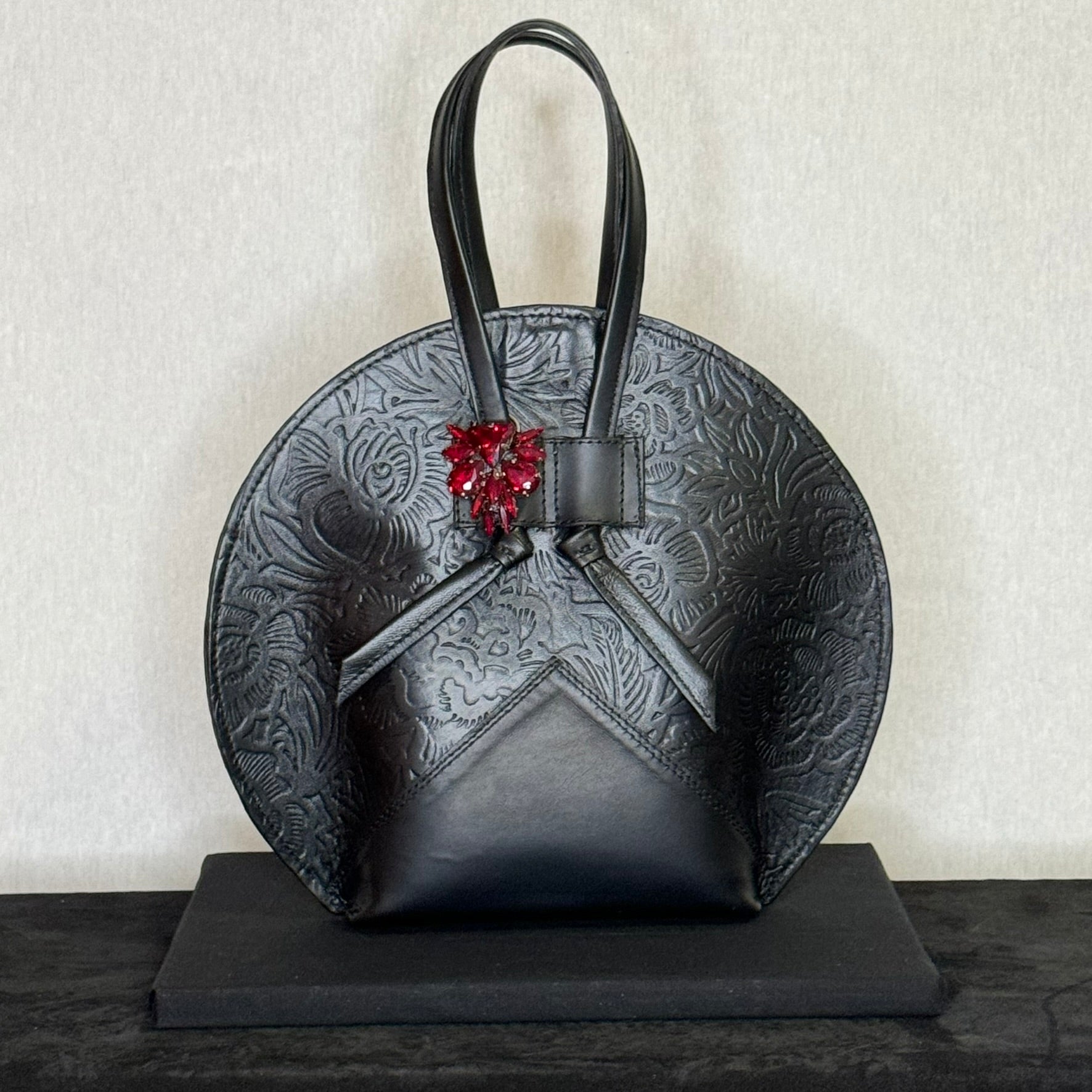 Petit sac fait main, confectionné en cuir de chèvre de haute qualité, avec un design d’inspiration asiatique et un délicat motif floral en relief qui apporte profondeur, symbolisme et un caractère élégant . Les reliefs évoquent des motifs traditionnels orientaux, conférant à la pièce harmonie et sophistication.